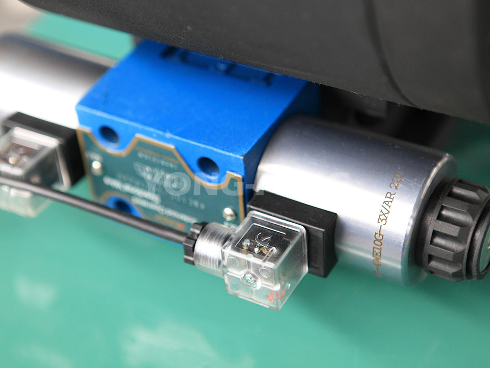 2、液壓系統由電 機、油泵、電磁閥、調壓閥及液壓閥組成了具有進退運動的雙液壓油路,而且在雙液壓油路中還增加離一個快速泄油閥油路,以達到更加快速 回位的目的,且速度可調、噪音和系統壓力降低。